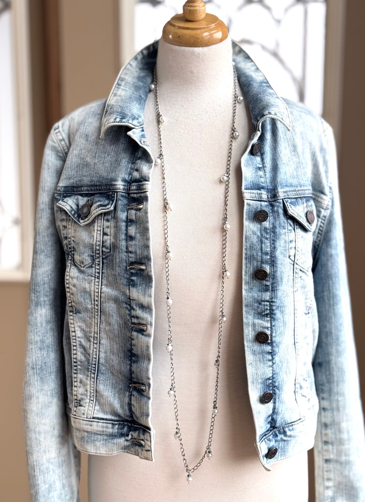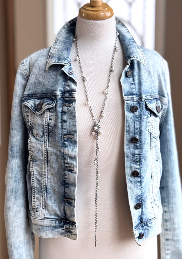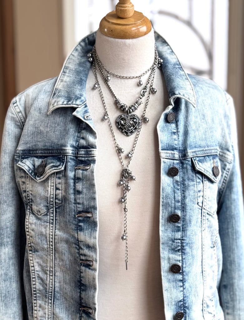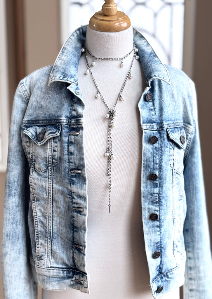 At 53" in length this is one diverse piece! The necklace of many styles! There are at least SIX ways (that we know of) to wear this aptly named Chameleon Chain. Choose from gold, white and grey.....each one adding a splash of style to your day (or night!).